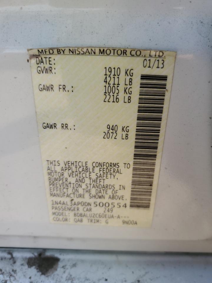 2013 NISSAN ALTIMA - 1N4AL3AP0DN500554, колір - Білий, 2.5, Бензин, із США