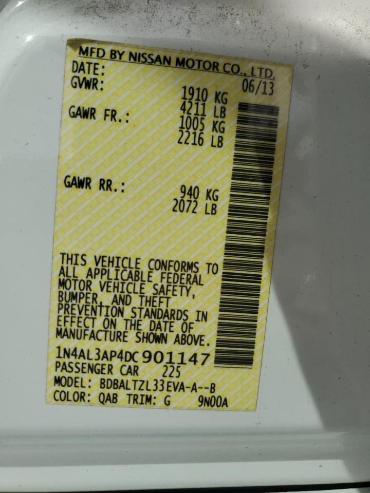 2013 NISSAN ALTIMA - 1N4AL3AP4DC901147, колір - Білий, 2.5, Бензин, із США