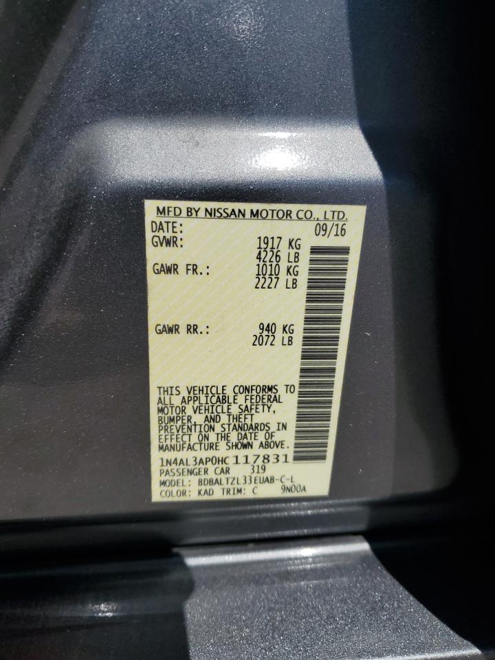 2017 NISSAN ALTIMA - 1N4AL3AP0HC117831, колір - Сірий, 2.5, Бензин, із США