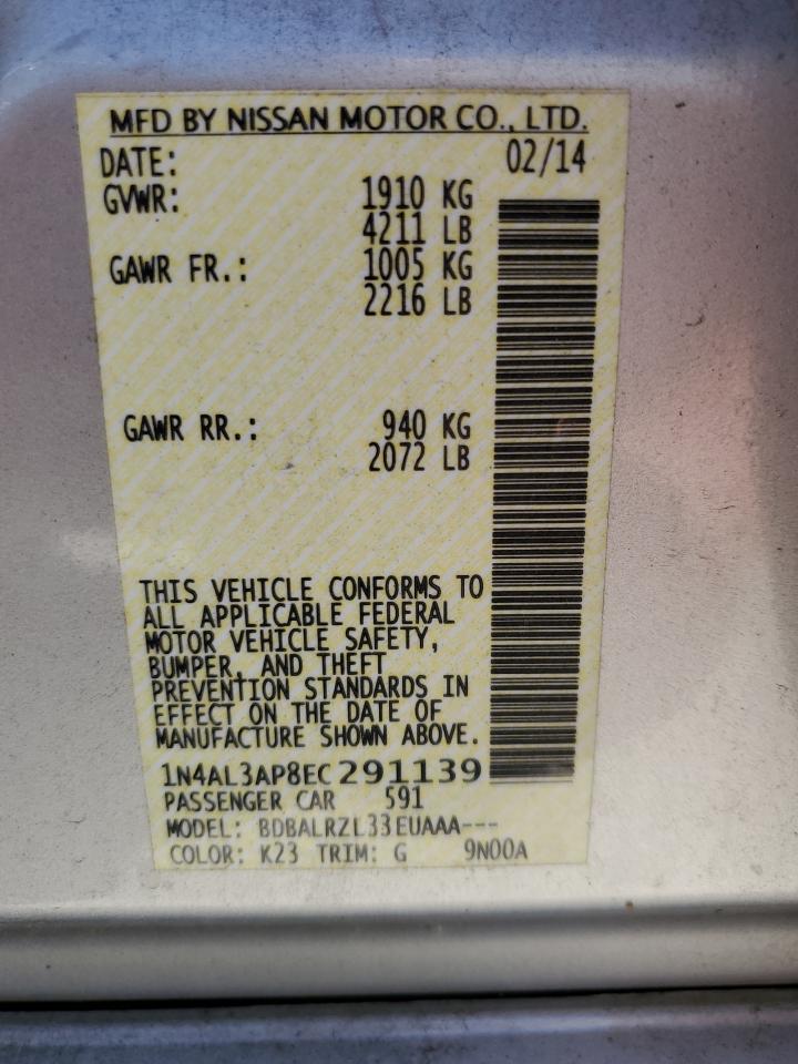 2014 NISSAN ALTIMA - 1N4AL3AP8EC291139, колір - Срібний, 2.5, Бензин, із США