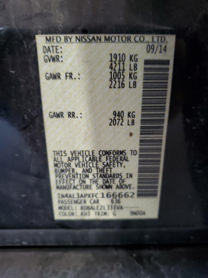 2015 NISSAN ALTIMA - 1N4AL3APXFC166662, колір - Чорний, 2.5, Бензин, із США