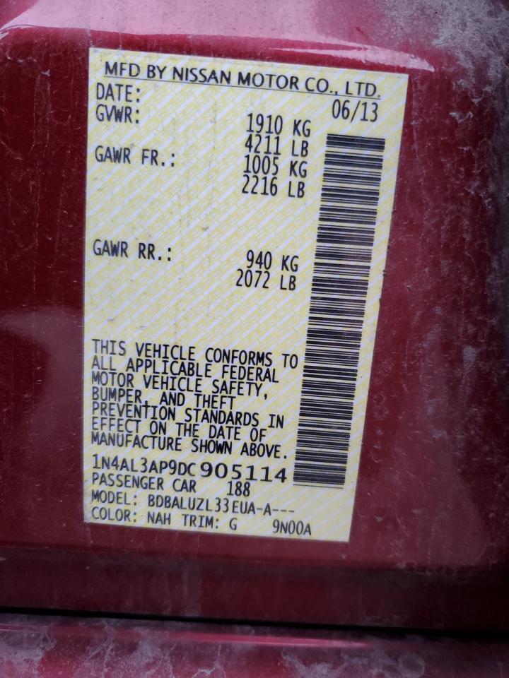 2013 NISSAN ALTIMA - 1N4AL3AP9DC905114, колір - Бургундія, 2.5, Бензин, із США