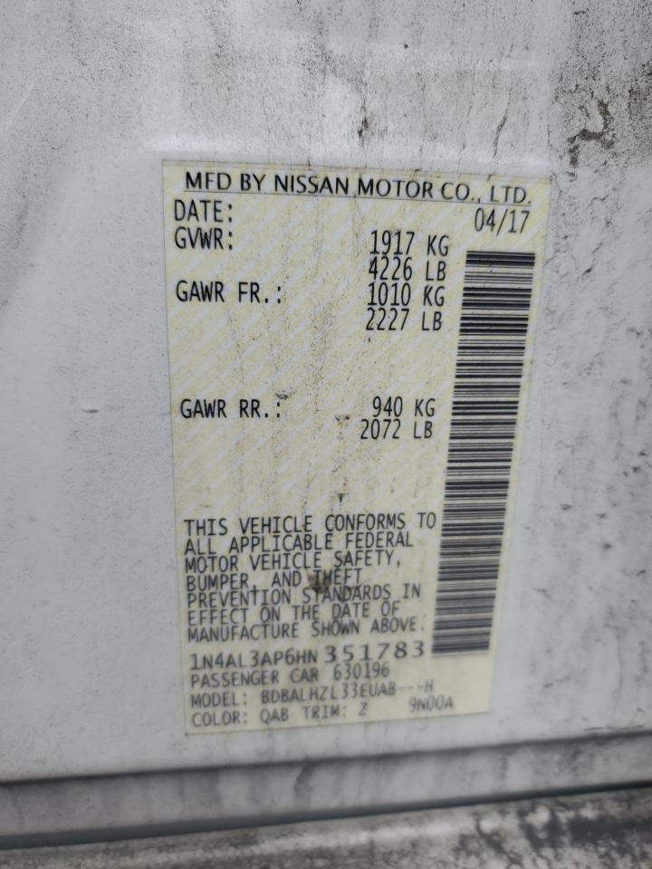 2017 NISSAN ALTIMA - 1N4AL3AP6HN351783, колір - Білий, 2.5, Бензин, із США