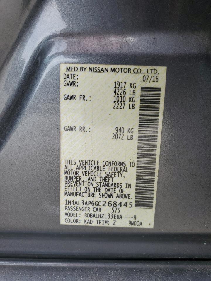 2016 NISSAN ALTIMA - 1N4AL3AP6GC268445, колір - Сірий, 2.5, Бензин, із США