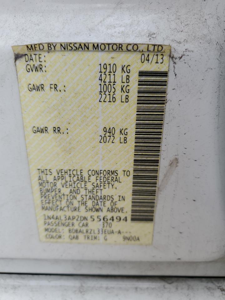 2013 NISSAN ALTIMA - 1N4AL3AP2DN556494, колір - Білий, 2.5, Бензин, із США