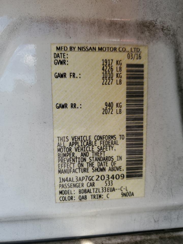 2016 NISSAN ALTIMA - 1N4AL3AP7GC203409, колір - Білий, 2.5, Бензин, із США