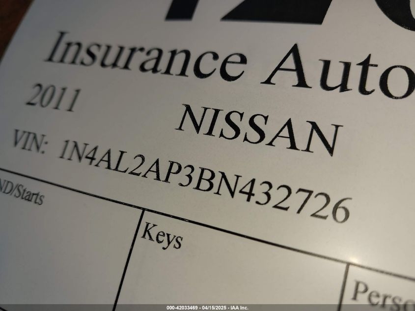 2011 NISSAN ALTIMA - 1N4AL2AP3BN432726, колір - Коричневий, 2.5, Бензин, Передній привід із США
