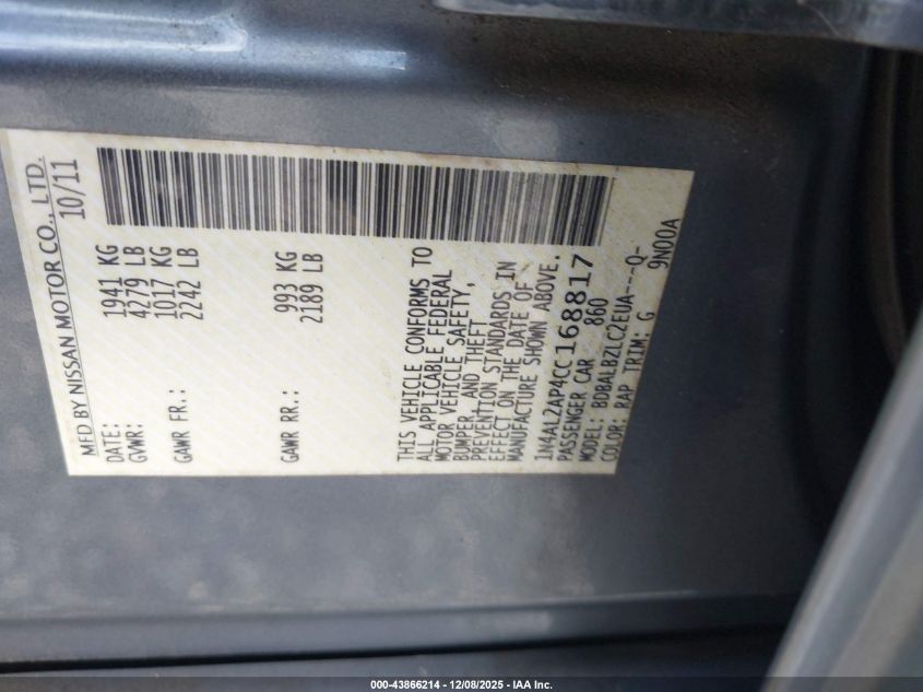 2012 NISSAN ALTIMA - 1N4AL2AP4CC168817, колір - Синій, 2.5, Бензин, Передній привід із США
