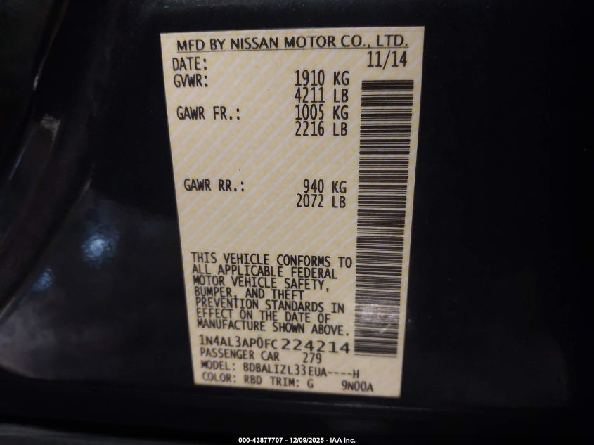 2015 NISSAN ALTIMA 2.5
