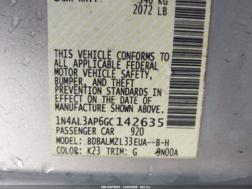 2016 NISSAN ALTIMA - 1N4AL3AP6GC142635, колір - Срібний, 2.5, Бензин, Передній привід із США