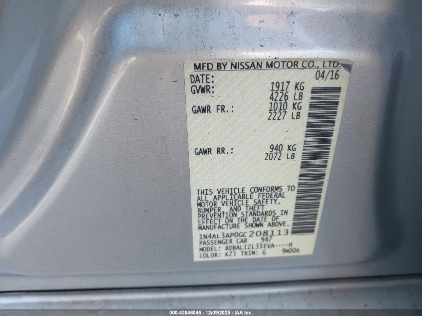 2016 NISSAN ALTIMA - 1N4AL3AP0GC208113, колір - Срібний, 2.5, Бензин, Передній привід із США