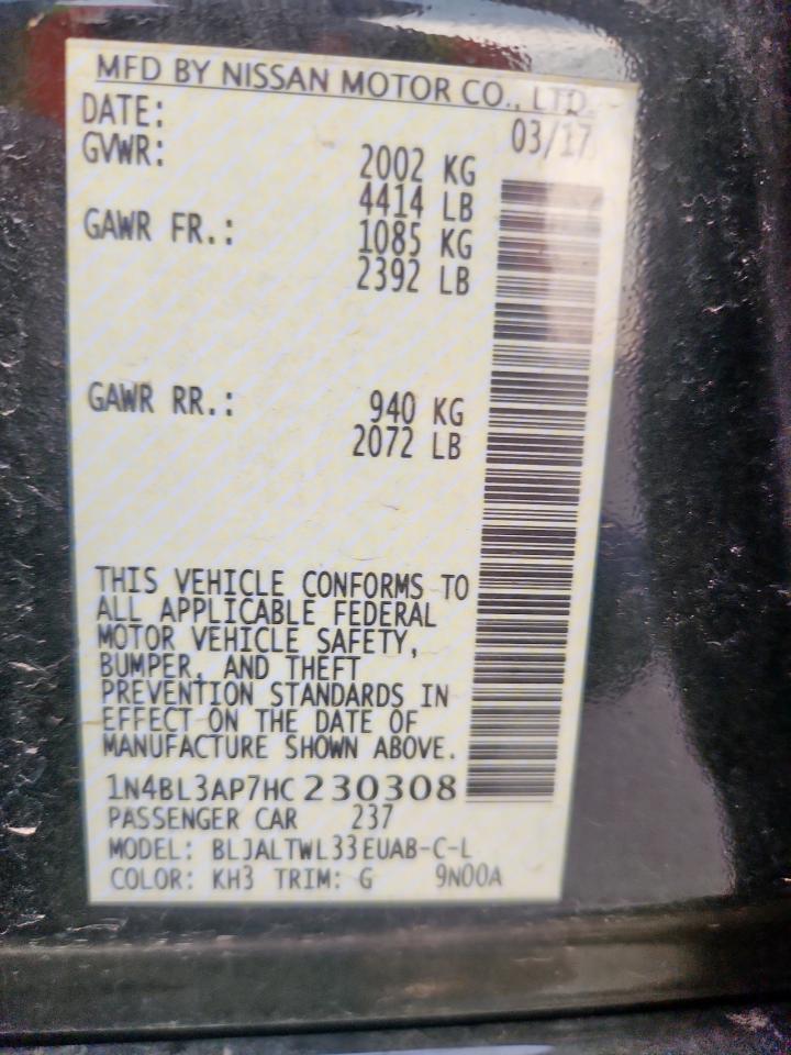 2017 NISSAN ALTIMA - 1N4BL3AP7HC230308, колір - Чорний, 3.5, Бензин, із США