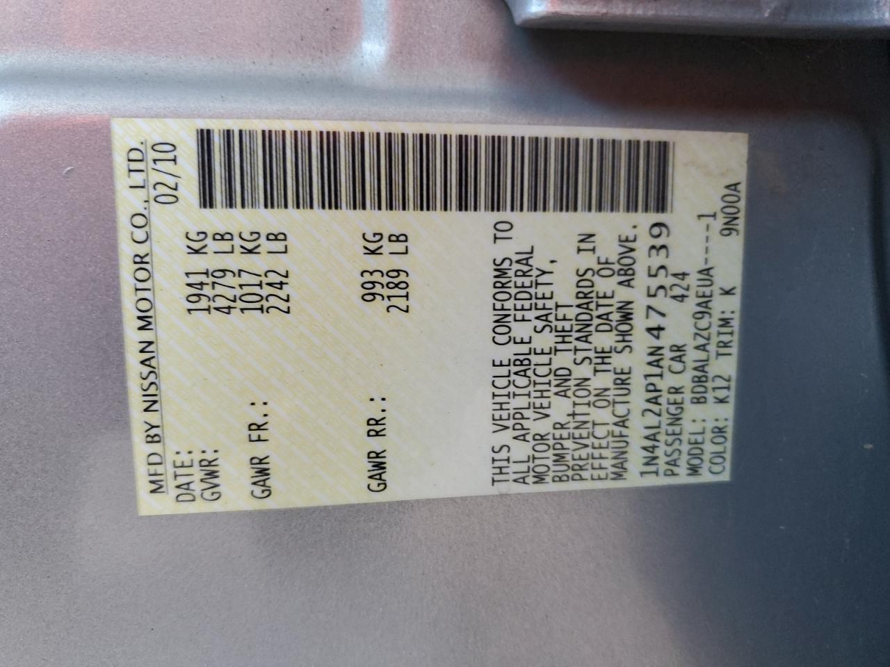 2010 NISSAN ALTIMA - 1N4AL2AP1AN475539, колір - Срібний, 2.5, Бензин, із США