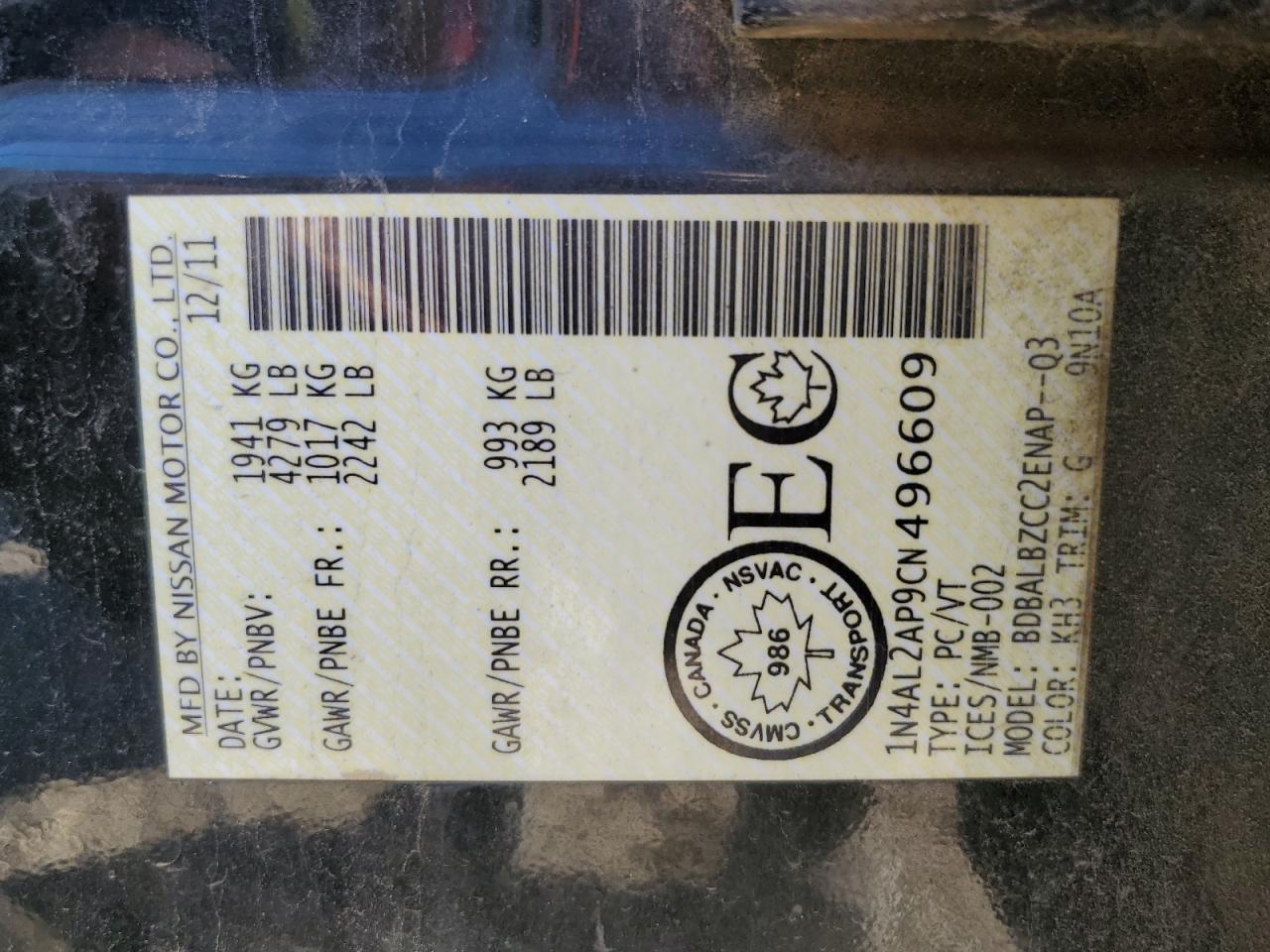 Колір ЧорнийЦиліндри 4VIN 1N4AL2AP9CN496609Стан Заводиться та їде (перевірено)Ушкодження НезначніДата аукціона 2025-10-08