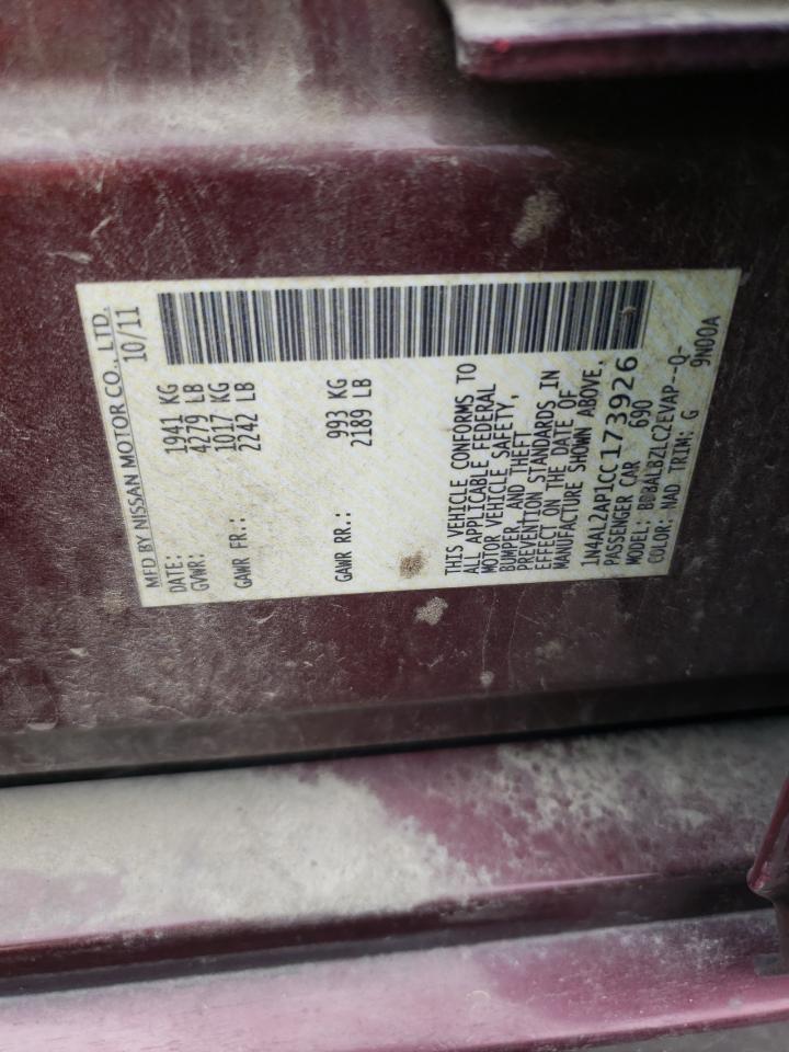 2012 NISSAN ALTIMA - 1N4AL2AP1CC173926, колір - Бургундія, 2.5, Бензин, із США