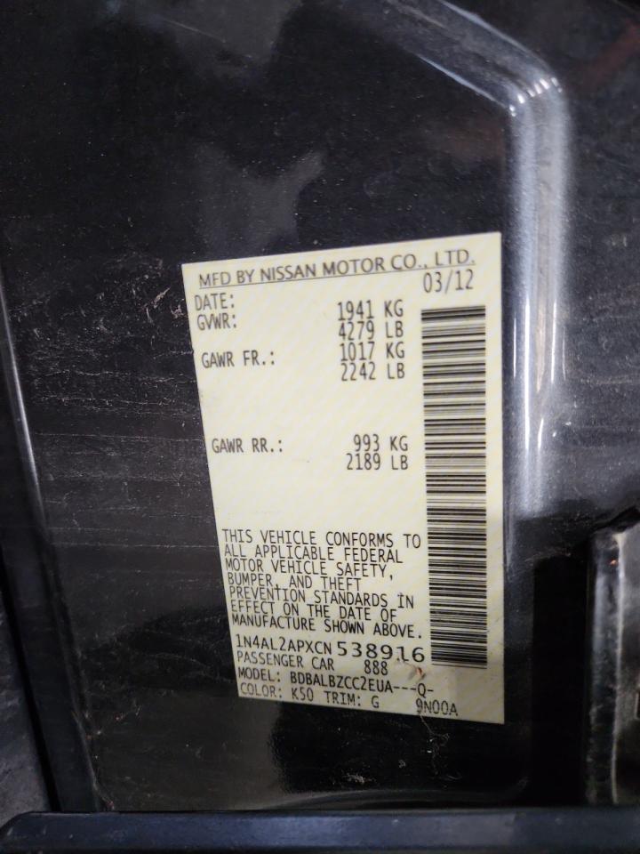 Колір СірийЦиліндри 4VIN 1N4AL2APXCN538916Стан НевідомоУшкодження Передня або задня