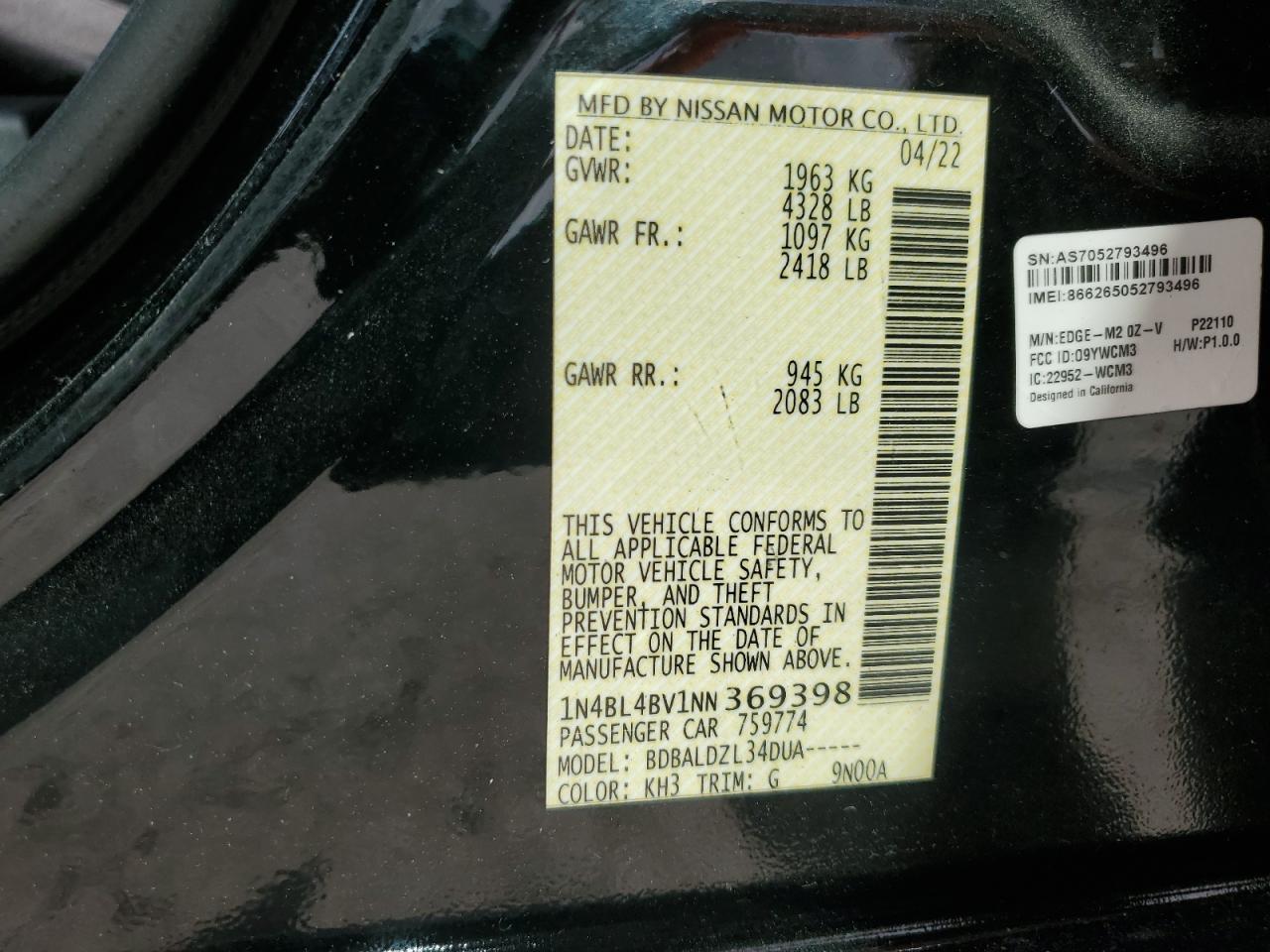2022 NISSAN ALTIMA - 1N4BL4BV1NN369398, колір - Чорний, 2.5, Бензин, із США