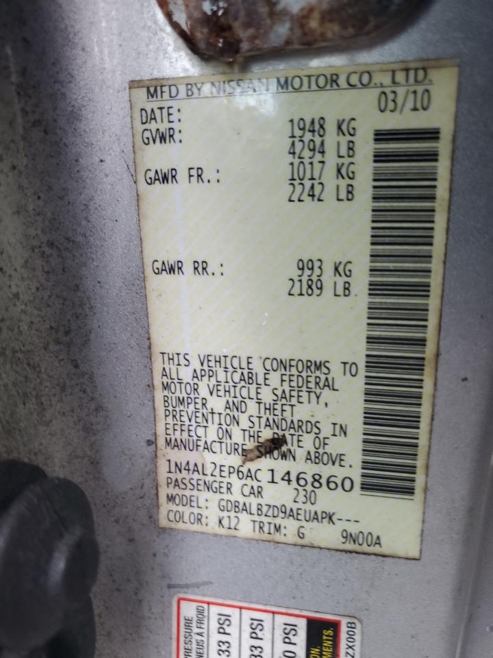 2010 NISSAN ALTIMA - 1N4AL2EP6AC146860, колір - Срібний, 2.5, Бензин, із США