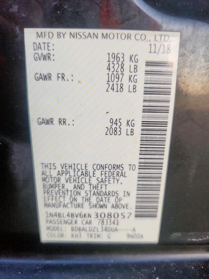 2019 NISSAN ALTIMA - 1N4BL4BV6KN308057, колір - Чорний, 2.5, Бензин, із США
