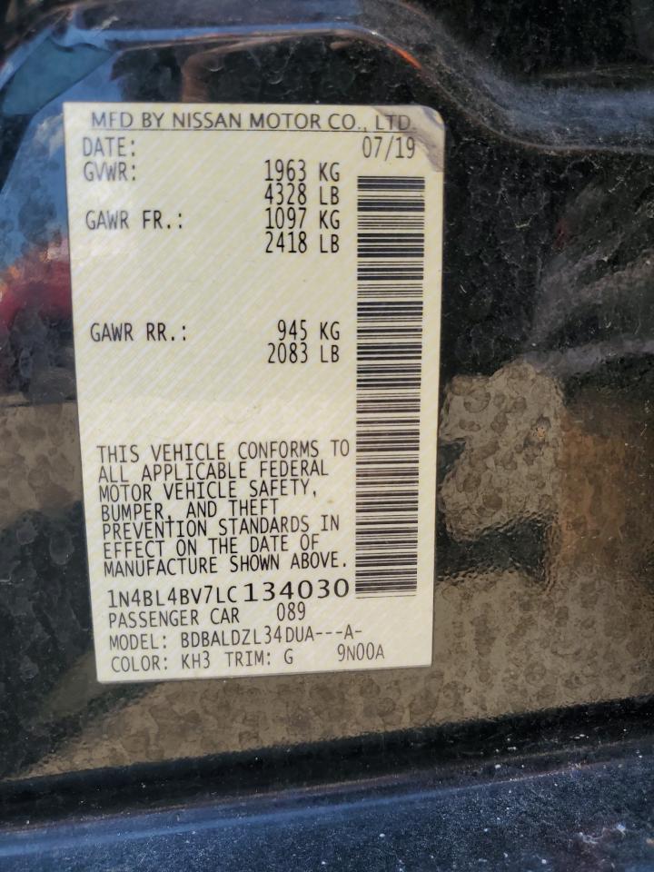 2020 NISSAN ALTIMA - 1N4BL4BV7LC134030, колір - Чорний, 2.5, Бензин, із США