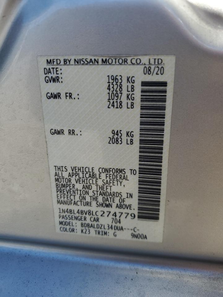 2020 NISSAN ALTIMA - 1N4BL4BV8LC274779, колір - Срібний, 2.5, Бензин, із США
