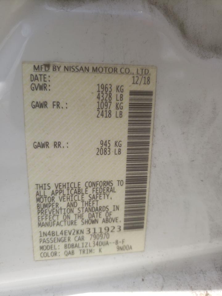 2019 NISSAN ALTIMA - 1N4BL4EV2KN311923, колір - Білий, 2.5, Бензин, із США