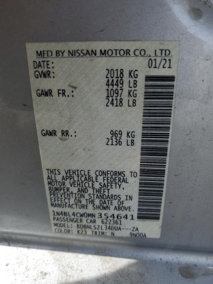2021 NISSAN ALTIMA - 1N4BL4CW0MN354641, колір - Срібний, 2.5, Бензин, Повний привід із США