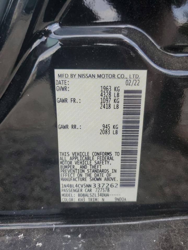 2022 NISSAN ALTIMA - 1N4BL4CV5NN337262, колір - Чорний, 2.5, Бензин, із США