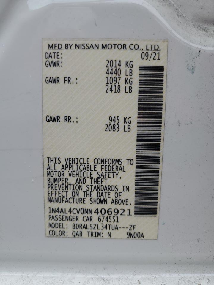 2021 NISSAN ALTIMA - 1N4AL4CV0MN406921, колір - Білий, 2.0, Бензин, із США