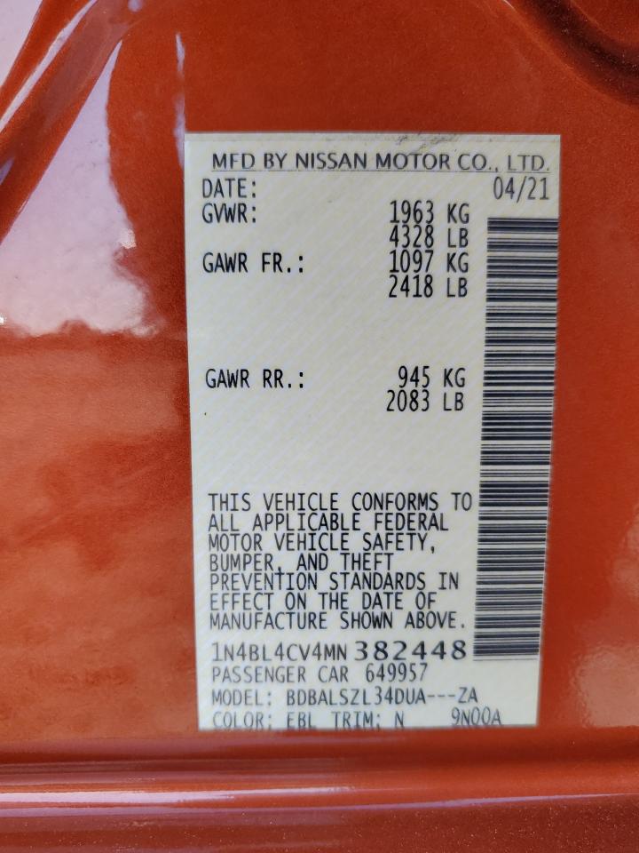 2021 NISSAN ALTIMA - 1N4BL4CV4MN382448, колір - Апельсиновий, 2.5, Бензин, із США