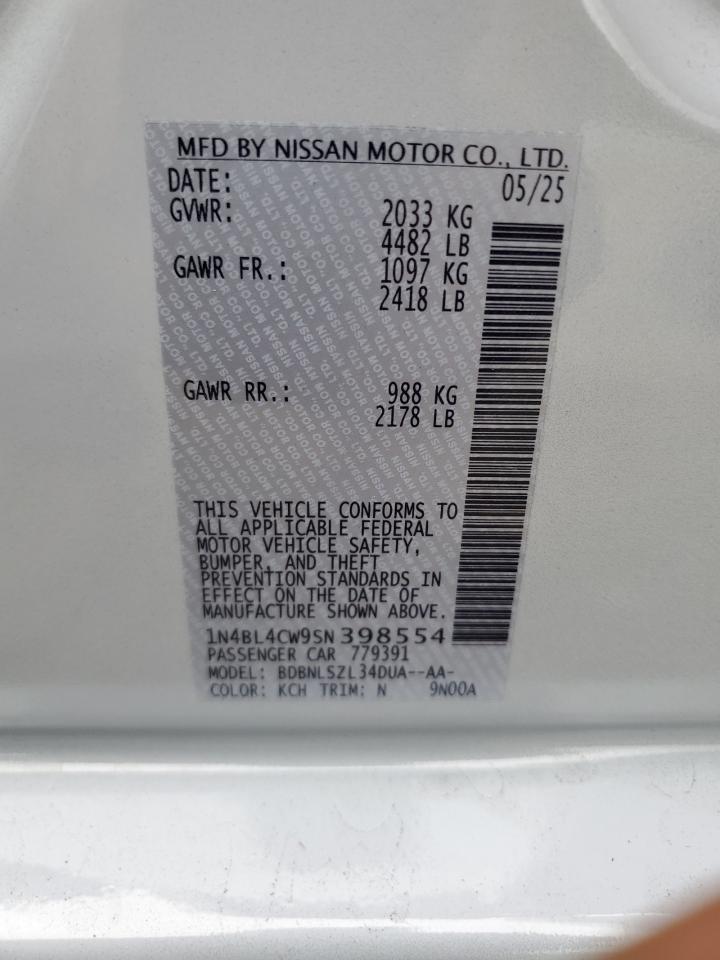2025 NISSAN ALTIMA - 1N4BL4CW9SN398554, колір - Білий, 2.5, Бензин, Повний привід із США