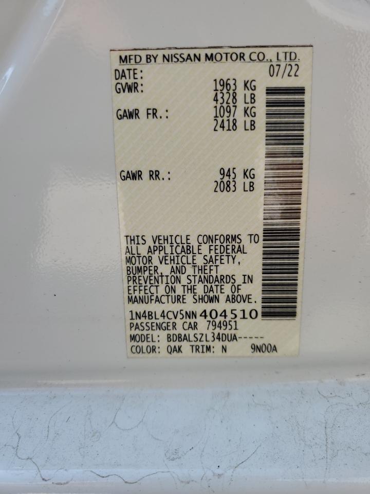 2022 NISSAN ALTIMA - 1N4BL4CV5NN404510, колір - Білий, 2.5, Бензин, із США