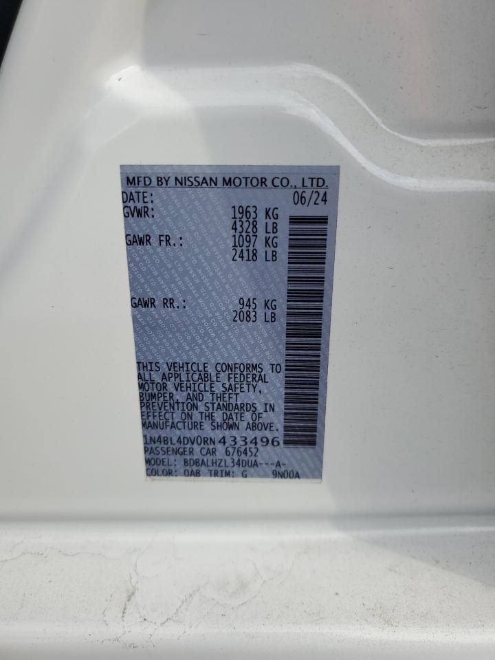 2024 NISSAN ALTIMA - 1N4BL4DV0RN433496, колір - Білий, 2.5, Бензин, із США
