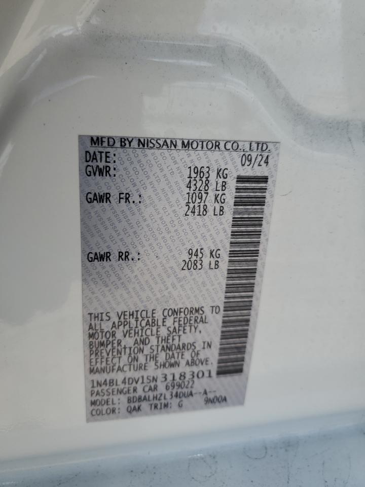 2025 NISSAN ALTIMA - 1N4BL4DV1SN318301, колір - Білий, 2.5, Бензин, із США