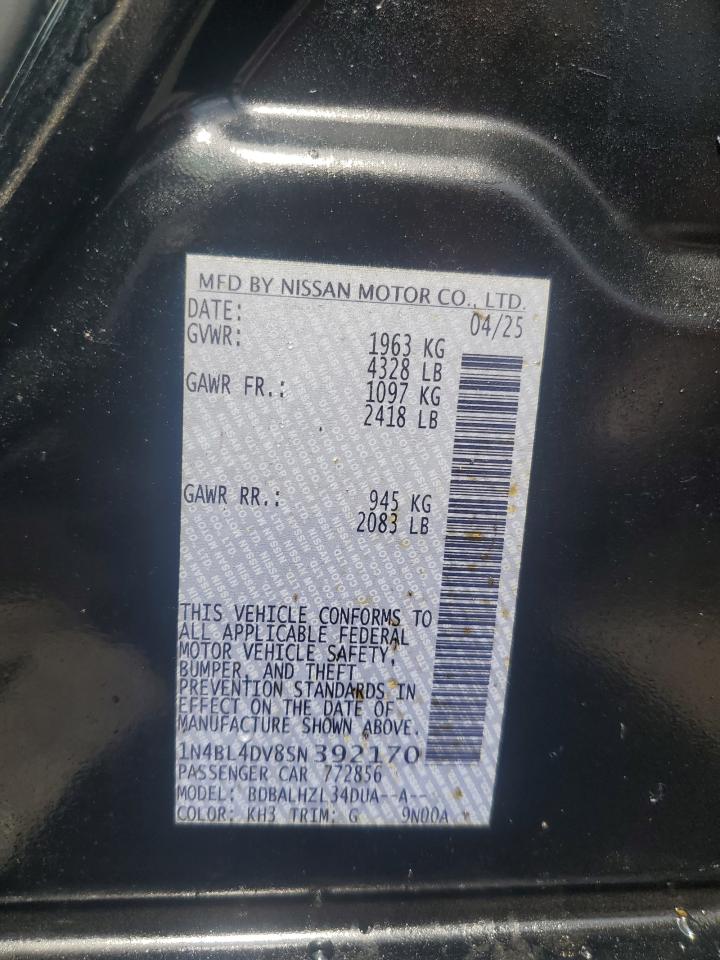 2025 NISSAN ALTIMA - 1N4BL4DV8SN392170, колір - Чорний, 2.5, Бензин, із США
