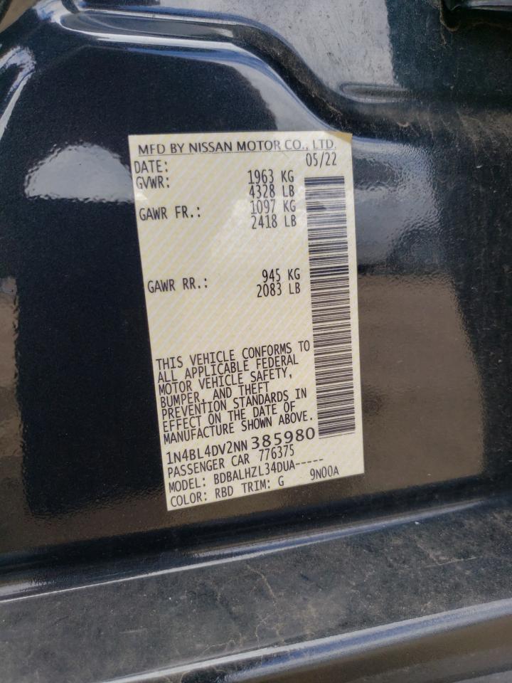2022 NISSAN ALTIMA - 1N4BL4DV2NN385980, колір - Чорний, 2.5, Бензин, із США