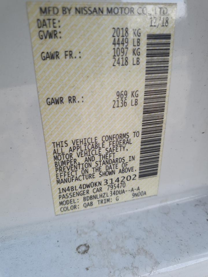 2019 NISSAN ALTIMA - 1N4BL4DW0KN314202, колір - Білий, 2.5, Бензин, Повний привід із США