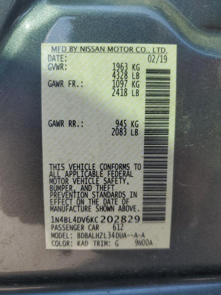 Колір СірийЦиліндри 4VIN 1N4BL4DV6KC202829Стан ЗаводитьсяУшкодження Передня або задня