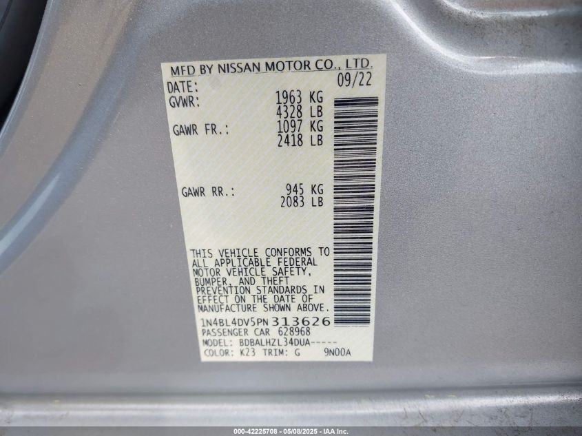2023 NISSAN ALTIMA - 1N4BL4DV5PN313626, колір - Срібний, 2.5, Бензин, Передній привід із США