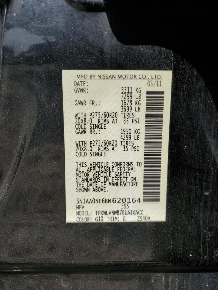 2011 NISSAN ARMADA - 5N1AA0NE6BN620164, колір - Чорний, 5.6, Бензин, 4x4 з заднім приводом із США