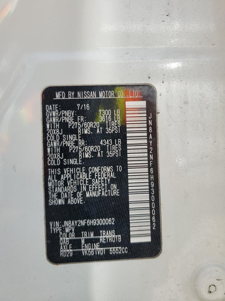 2017 NISSAN ARMADA - JN8AY2NF6H9300062, колір - Білий, 5.6, Бензин, Задній привід із США