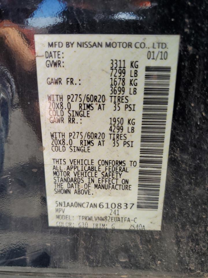2010 NISSAN ARMADA - 5N1AA0NC7AN610837, колір - Чорний, 5.6, Бензин, 4x4 з заднім приводом із США