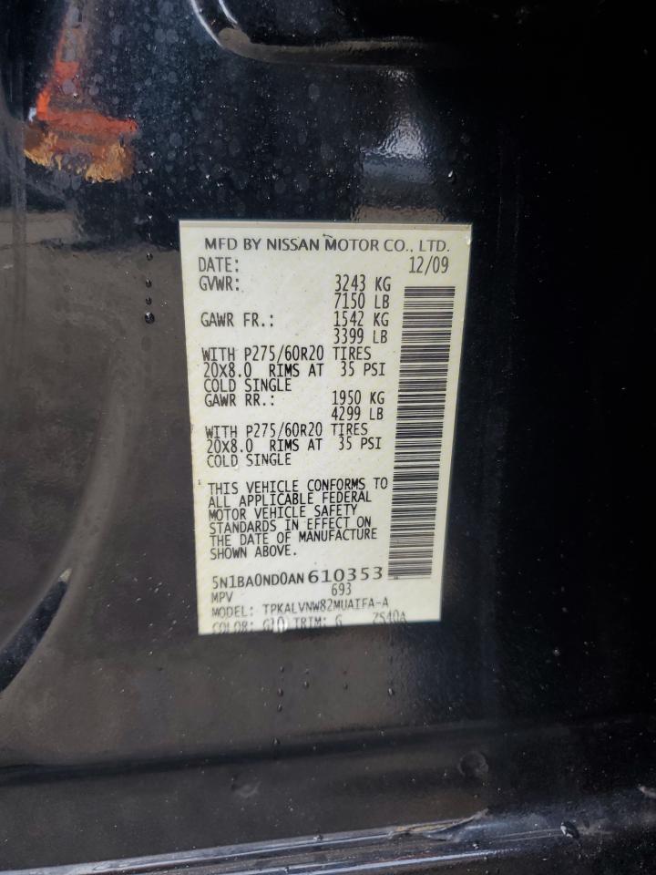 2010 NISSAN ARMADA - 5N1BA0ND0AN610353, колір - Чорний, 5.6, Бензин, Задній привід із США