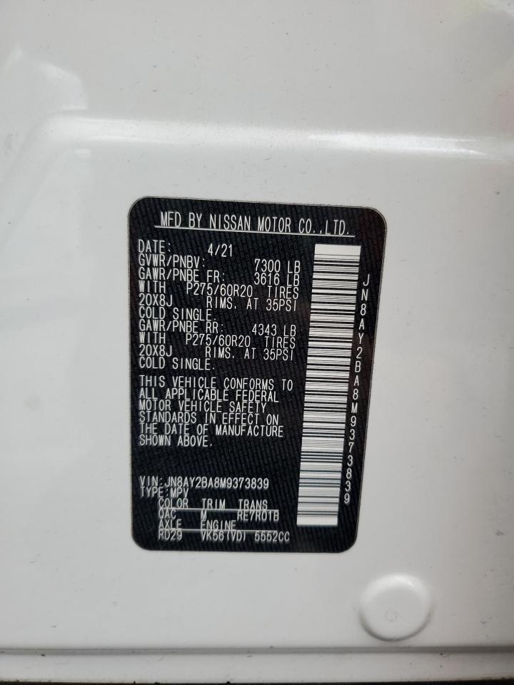 2021 NISSAN ARMADA - JN8AY2BA8M9373839, колір - Білий, 5.6, Бензин, Задній привід із США
