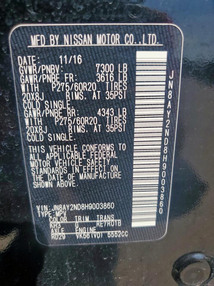 2017 NISSAN ARMADA - JN8AY2ND8H9003860, колір - Чорний, 5.6, Бензин, Задній привід із США