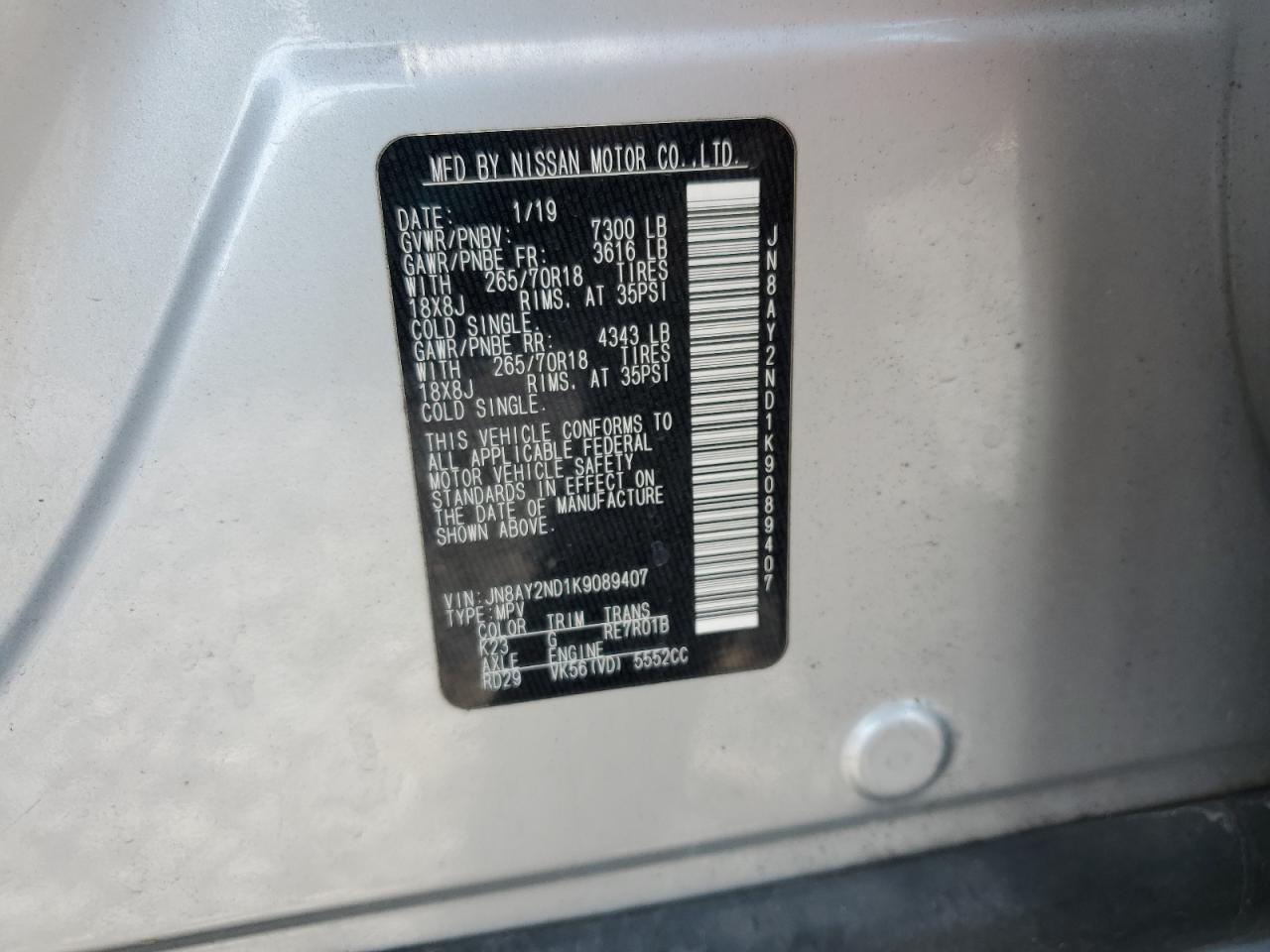 2019 NISSAN ARMADA - JN8AY2ND1K9089407, колір - Срібний, 5.6, Бензин, Задній привід із США