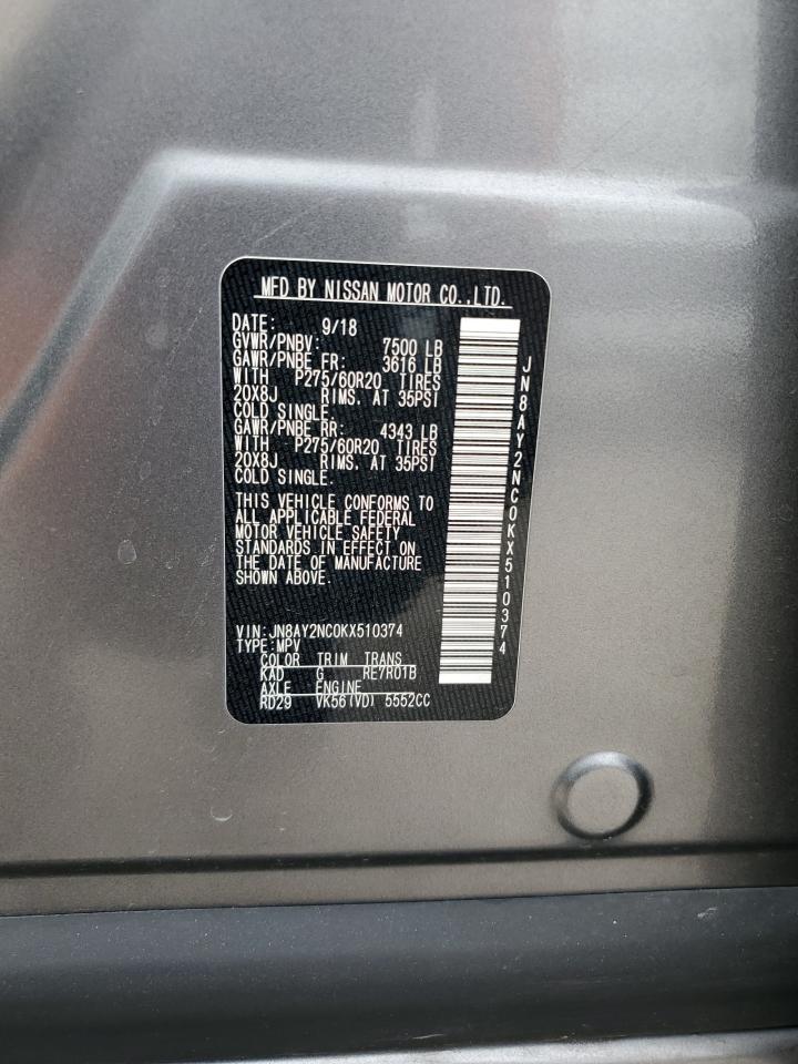 2019 NISSAN ARMADA - JN8AY2NC0KX510374, колір - Сірий, 5.6, Бензин, Повний привід із США