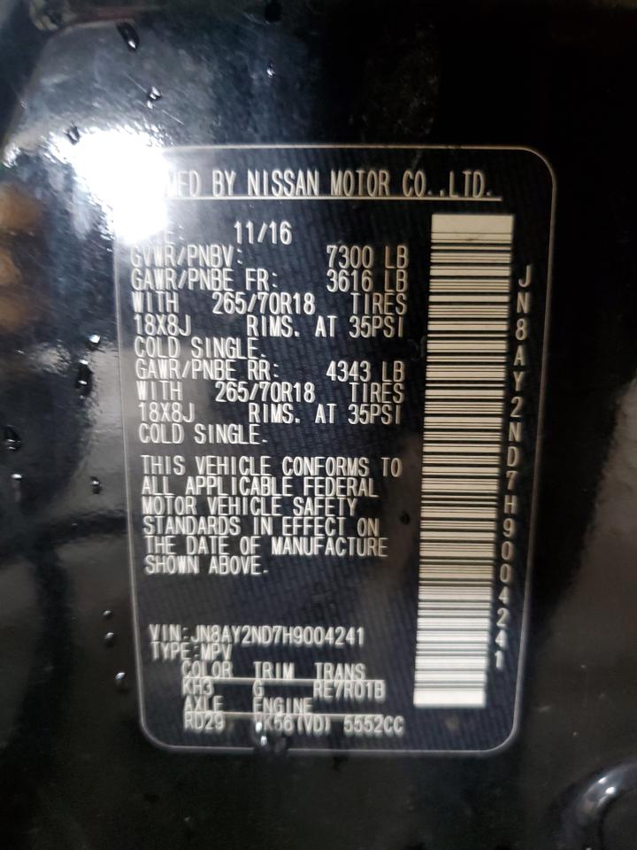 2017 NISSAN ARMADA - JN8AY2ND7H9004241, колір - Чорний, 5.6, Бензин, Задній привід із США
