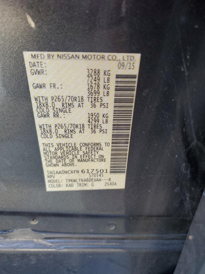 2015 NISSAN ARMADA - 5N1AA0NCXFN617501, колір - Сірий, 5.6, Бензин, 4x4 з заднім приводом із США