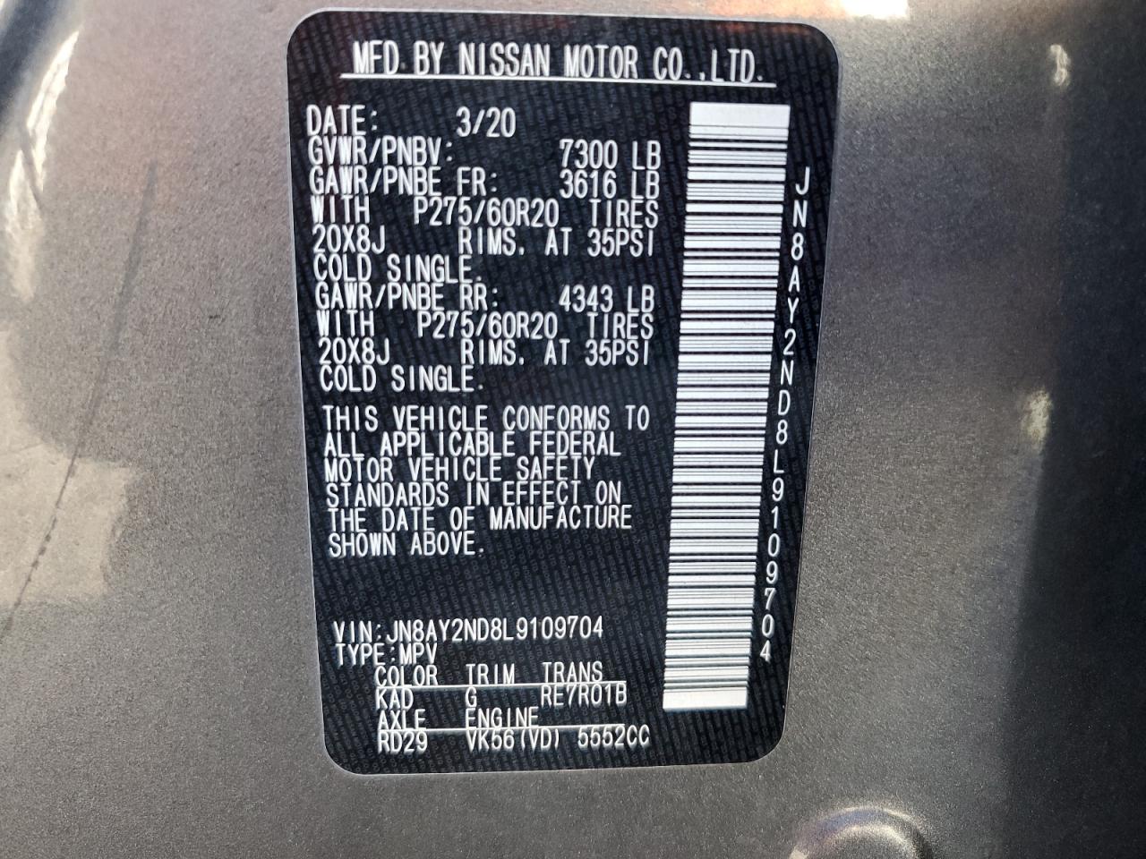 2020 NISSAN ARMADA - JN8AY2ND8L9109704, колір - Сірий, 5.6, Бензин, Задній привід із США